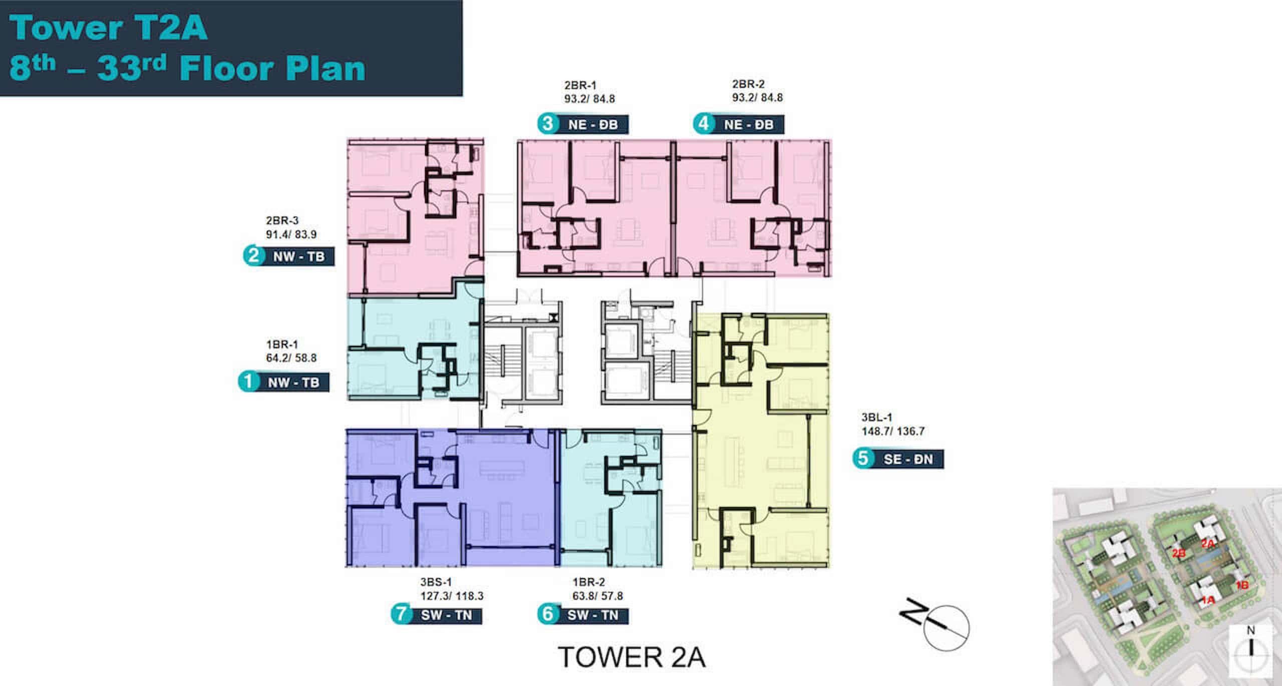 - Tháp T1A và T2A: cao 34 tầng.